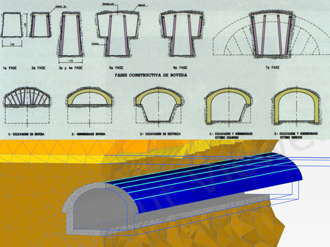 Túnel con Método Belga bajo galería existente en Madrid